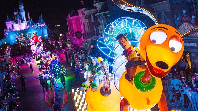 可以待到夜晚一起參與「迪士尼光影匯」夜間巡遊,眾多的迪士尼卡通明星都將以前所未見的方式呈現在你的眼前。
